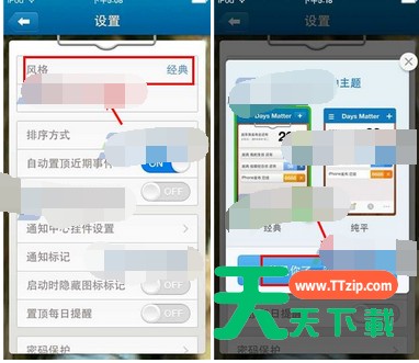 今天讲解的是倒数日更换风格的操作流程,想学习倒数日更换风格的操作过程的,就去下文看一看,了解了解,相信对大家一定会有所帮助的。倒数日更换风格的操作流程 1)打开倒数日APP进入首页后点击下方导航栏中【...】,接着点击【设置】。(如下图) 2)在设置页中点击【风格】。选择切换你要的风格点击【就是你了,XX版】。(如下图) 今日就快来学习本文倒数日更换风格的操作流程吧,相信在以后的使用中一定会得心应手的。@天天下载 除特别注明外,本站所有文章均为 天天下载 原创,转载请注明出处来自 https://www.ttzip.com/58329.html