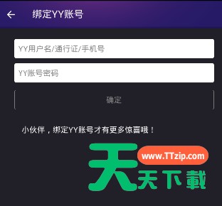 3、点击之后即可进入绑定YY账号的页面,输入账号密码即可完成绑定。