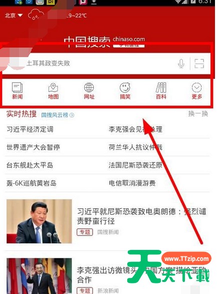 小伙伴们,你们了解中国搜索APP吗?今天天天下载就分享了关于中国搜索APP的简单使用过程,感兴趣的小伙伴一起来看看吧。中国搜索APP的简单使用过程 1、许多小伙伴在使用中国搜索APP的时候都不知道怎样搜索自己想要搜索的内容,其实大家只需要打开软件,在首页上方就能够直接输入内容进行搜索了,这里我们不仅可以手动输入,还可以进行语音搜索和二维码搜索,为用户提供了多种搜索方法哦; 2、例如天天下载搜索了近期热点“奥运会”,接下来我们就能够看到关于奥运会最全的相关资讯,包括开幕式时间和其它动态都可以一手掌握哟! 今日就快来学习本文中国搜索APP的简单使用过程吧,相信在以后的使用中一定会得心应手的。@天天下载 除特别注明外,本站所有文章均为 天天下载 原创,转载请注明出处来自 https://www.ttzip.com/58729.html