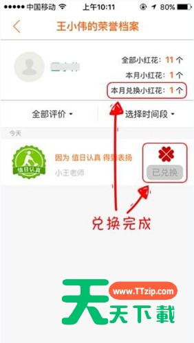 各位用户们知道怎么在手心网APP中兑换小红花吗?若是不知道的话可随着天天下载一同去下面文章中学习下在手心网APP中兑换小红花的详细方法。 在手心网APP中兑换小红花的详细方法 1、用户进入班级后,点击“班级荣誉”,如下图: 2、然后点击自己的信息,可以查看自己获得的奖励,如下图: 3、然后点击“兑换”,如下图: 4、兑换成功,如下图: 以上就是天天下载为你们讲解的在手心网APP中兑换小红花的详细方法,你们都学会了吗? @天天下载 除特别注明外,本站所有文章均为 天天下载 原创,转载请注明出处来自 https://www.ttzip.com/59945.html