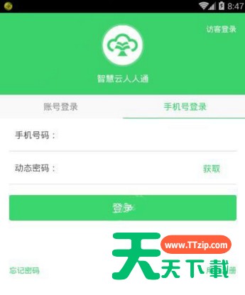 一些网友还不太智慧云人人通这款应用。那么今天天天下载给大家讲解一下智慧云人人通进行登录的操作过程,下面就是智慧云人人通进行登录的操作教程。智慧云人人通进行登录的操作过程 首先打开智慧云人人通的APP,进入登陆界面,【账号登录】直接输入之前注册的账号和密码就可以登陆了。 点击【手机号登陆】,输入自己的手机号码,和动态密码就可以登陆啦,防止一些记性不好的小伙伴们记不住自己设置的密码。 各位小伙伴们,看完上面的精彩内容,都清楚智慧云人人通进行登录的操作过程了吧!@天天下载 除特别注明外,本站所有文章均为 天天下载 原创,转载请注明出处来自 https://www.ttzip.com/60387.html
