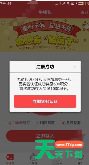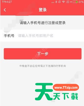 牛板金理财APP大家都知道的,大家或许不知道牛板金理财进行注册的操作过程,今天天天下载就讲解牛板金理财进行注册的方法哦,希望能够帮助到大家呢。牛板金理财进行注册的操作过程 1、用户打开牛板金app后,就可以随意点击按钮进入注册界面,输入手机号和验证码,如下图; 2、然后设置手势密码,如下图: 3、注册成功后,用户可以立即进行实名认证,也可以暂且跳过这一步,如下图: 以上就讲解了牛板金理财进行注册的操作过程,希望有需要的小伙伴都来学习哦。@天天下载 除特别注明外,本站所有文章均为 天天下载 原创,转载请注明出处来自 https://www.ttzip.com/60726.html