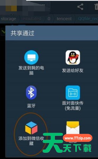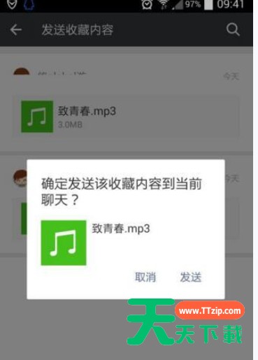 微信是不少伙伴们常会使用到的一款社交APP,不过各位可能不知道在微信里分享本地音乐的操作流程,今天天天下载就讲解在微信里分享本地音乐的方法哦,希望能够帮助到大家呢。在微信里分享本地音乐的操作流程 1、首先,下载微信,安装好了以后,先打开手记得文件管理器,找到自己要分享的音乐文件位置,点击右上角的三角图案: 2、目前很多国内的文件管理器都加入了此项功能【添加到微信收藏】,然后就需要进入微信: 3、选择分享联系人,点击右边的+号,进入【我的收藏】,就可以找到音乐文件: 4、对方收到消息以后可以通过微信直接播放音乐: 今日就快来学习本文在微信里分享本地音乐的操作流程吧,相信在以后的使用中一定会得心应手的。@天天下载 除特别注明外,本站所有文章均为 天天下载 原创,转载请注明出处来自 https://www.ttzip.com/60793.html