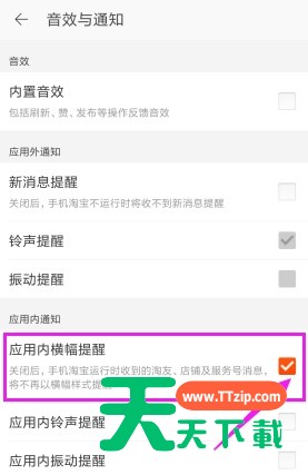 淘宝app是很多伙伴会使用到的一款网购应用,那么各位了解淘宝app将应用内横幅提醒关掉的操作流程吗?下文就是淘宝app将应用内横幅提醒关掉的教程。还不会操作的小伙伴不要错过哦!