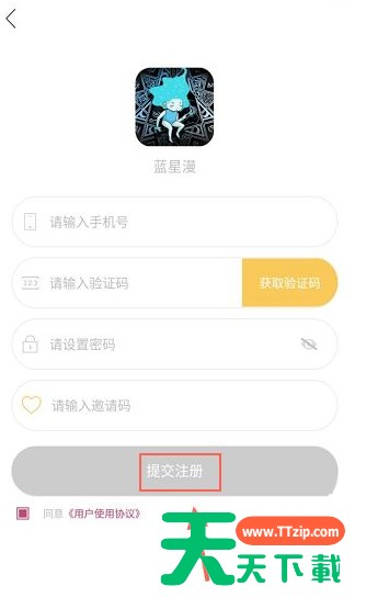 蓝星漫APP是很受欢迎的,而各位小伙伴在使用前,是需要进行注册的,而接下来笔者就分享了蓝星漫APP进行注册的操作流程,希望能够帮助到大家。蓝星漫APP进行注册的操作流程 1、打开app,在下图中,选择点击【果断注册】进入 2、接着在【注册】页面,填写手机号。验证码及密码等信息后,点击【提交注册】按钮就可马上的注册成功哦。 才接触蓝星漫APP的各位伙伴,学完本文,是不是觉得蓝星漫APP进行注册的操作很容易呢?@天天下载 除特别注明外,本站所有文章均为 天天下载 原创,转载请注明出处来自 https://www.ttzip.com/62442.html