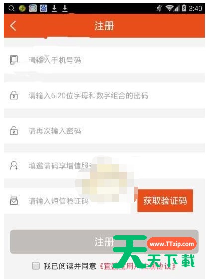 当前不少伙伴下接触宜盛宝APP,对该应用还不是特别熟悉,所以今天天天下载就分享了宜盛宝APP进行注册的简单操作,方法如下。宜盛宝APP进行注册的简单操作 首先用户要先下载宜盛宝APP,安装后打开进入主页,点击屏幕下方的“我的”按钮,进入登陆界面,再点击“立即注册”按钮 进入注册页面,填写完所有信息,设置账户,验证成功点击“注册”按钮,就可以注册成功啦~ 以上这里为各位分享了宜盛宝APP进行注册的简单操作,有兴趣的小伙伴赶快来注册吧。@天天下载 除特别注明外,本站所有文章均为 天天下载 原创,转载请注明出处来自 https://www.ttzip.com/62701.html