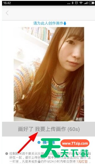想必不少才接触same这款应用的小伙伴还不会为自己的小伙伴画上一幅吧,现在呢,笔者就详细讲解在same里画别人的图文操作。不要错过哦!在same里画别人的图文操作讲解 用户打开same后,找到"你发自拍 我来画"频道,然后进入该频道,如下图: 然后点击"我要参加",如下图: 点击"我要画别人",如下图: 然后系统会自动匹配给你一张相片,然后你用纸画好后,拍下来上传就可以了,如下图: 看完上面的文章,大家想不想给自己身边的好友画上一幅画呢?感兴趣的小伙伴一起来动手试试吧。@天天下载 除特别注明外,本站所有文章均为 天天下载 原创,转载请注明出处来自 https://www.ttzip.com/62745.html
