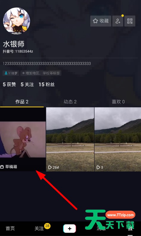 想重新编辑草稿视频,给作品添加上音乐的话,那就得从个人中心的页面下方找到带有“草稿箱”标识的视频,这样就能够点击进行继续创作了。