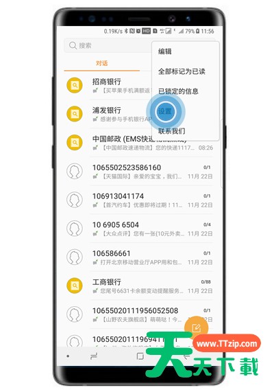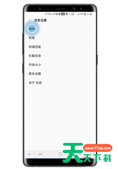 在三星note9中怎么更改短信提示呢?下面就为大家带来了在三星note9中更改短信提示的方法介绍,我们不妨一起去学学吧。 在三星note9中更改短信提示的方法介绍 第一步: 在主屏幕上,点击【信息】。 第二步: 点击右上角【┇】图标。 第三步: 点击【设置】。 第四步: 点击【通知】。 第五步: 可以分别为两张卡设置不同的信息提示音,这里以选择【SIM卡1】为例。 第六步: 点击【提示音】。 第七步: 选择一个喜欢的提示音。 以上就是在三星note9中更改短信提示的方法介绍,大家按照以上的方法动手试试看哦。@天天下载 除特别注明外,本站所有文章均为 天天下载 原创,转载请注明出处来自 https://www.ttzip.com/64361.html