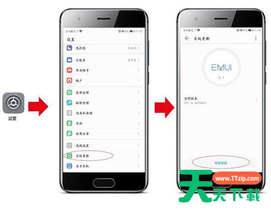 方法1、打开手机进入【设置】-【系统更新】-【检查更新】,如果有新版本,点击新版本下载并安装即可。(PS:如果没有发现新版本,请执行“设置 —> 系统更新—> 菜单—> 下载最新完整包”手动搜索进行升级)