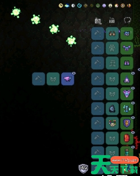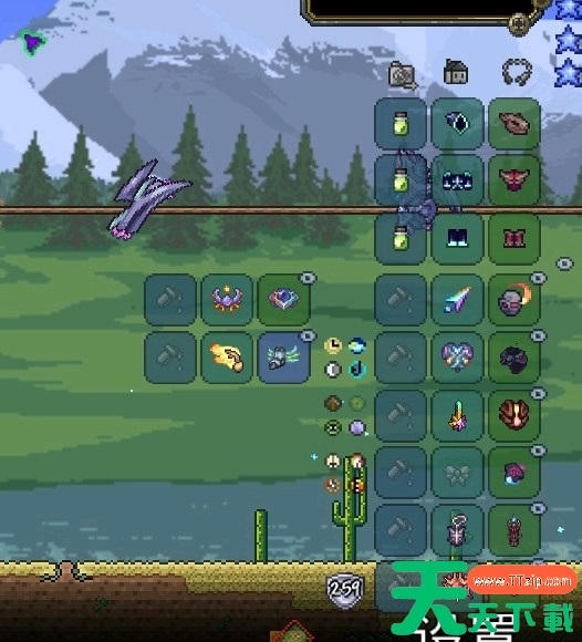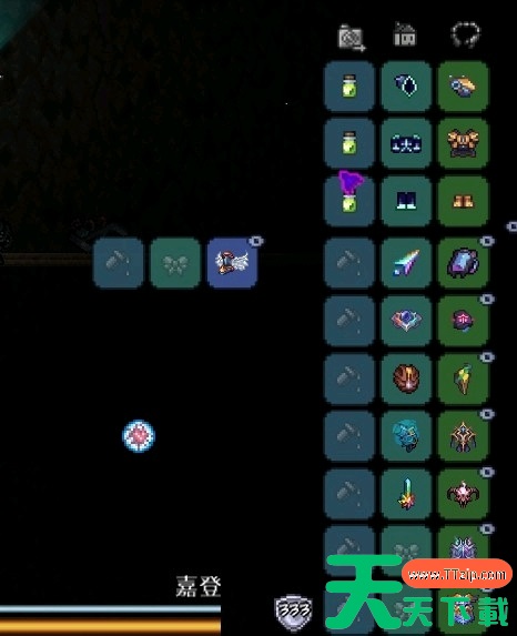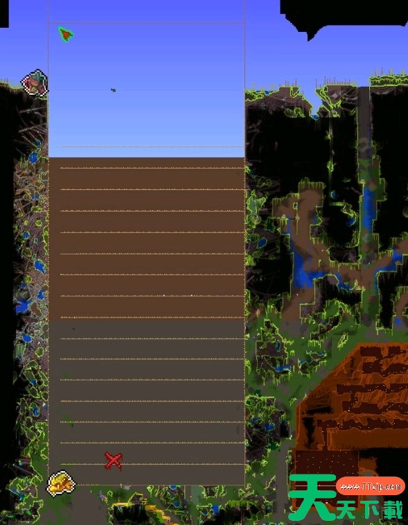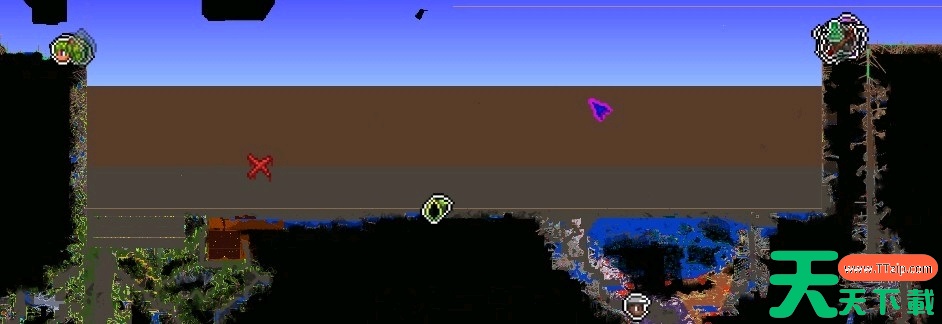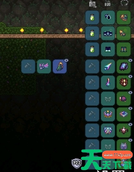 建议把地图挖成这样,右边用翅膀迅速飞起,左边用史莱姆坐骑迅速下坠,翅膀没力了就用钩锁抓住平台重置飞行时间。(左边的平台可以再短一点,我留那么窄主要是懒得挖了)