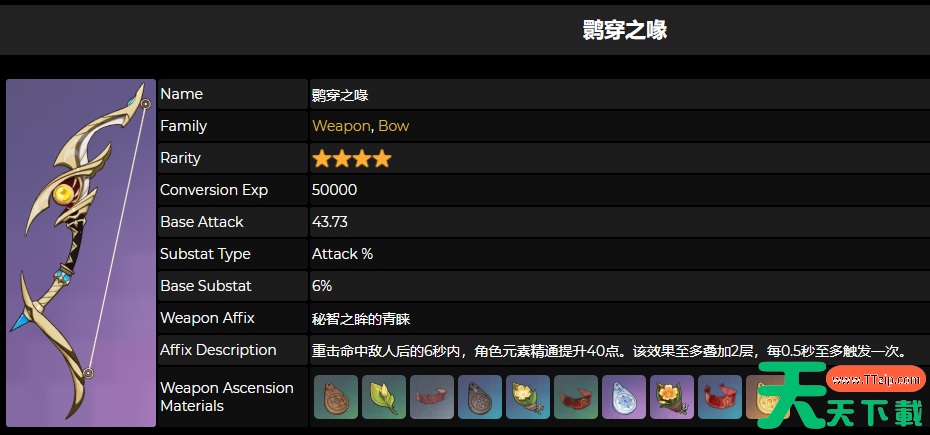 原神鹮穿之喙属性如何呢?很多玩家还不知道,下面给大家带来的是原神鹮穿之喙属性面板效果一览,一起来看吧。