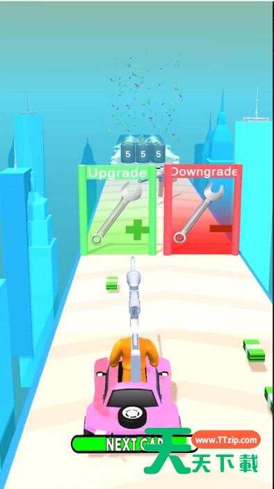 (4).操作玩法非常的简单,玩家只需要滑动屏幕控制车辆的射击方向,将有数字的障碍物消灭就可以。