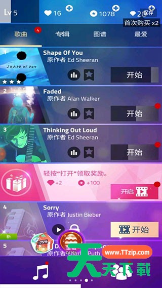 b.游戏的玩法轻松,节奏较快,玩家可以快速演奏完一首曲目,十分适合玩家闲暇时刻休闲娱乐,放松心情,释放压力。
