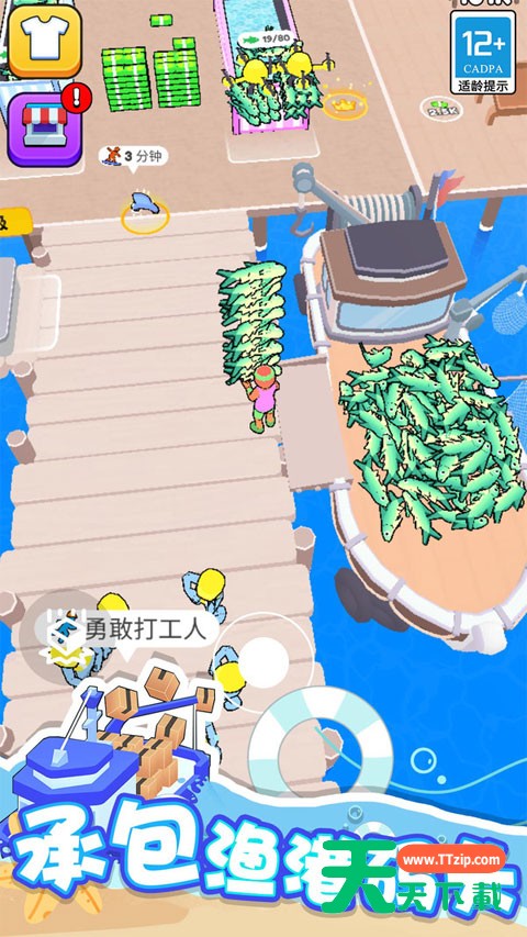 1.游戏的玩法相当的简单,控制自己的角色进行探索,放置各种全新的设施,让港口更加的繁荣。2.超多丰富的经营玩法,为你的码头不断地升级,或是建造大量的餐厅,每种都能够赚取丰厚的收益。3.广阔的场景地图,参与到诸多不同的事物之中,享受各种搬运的乐趣,捕获更多大量的鱼群。