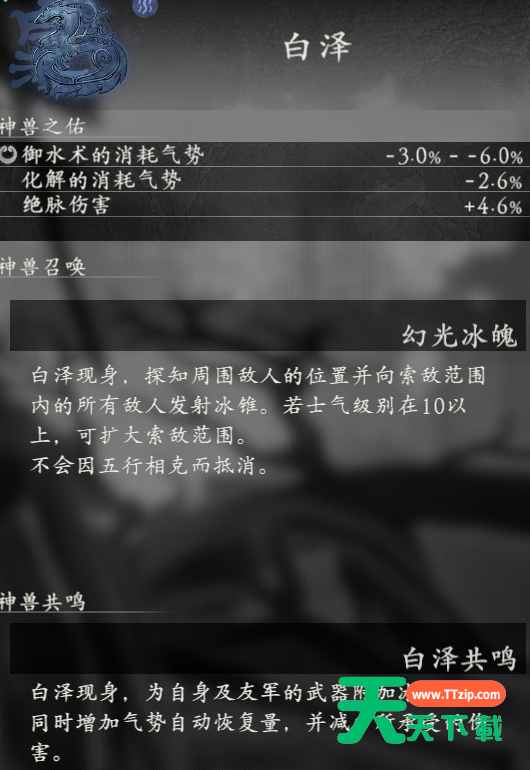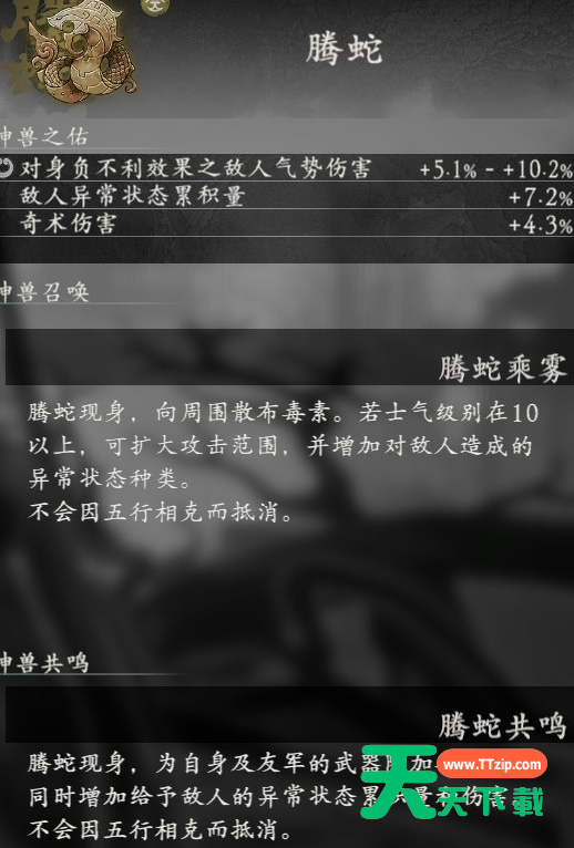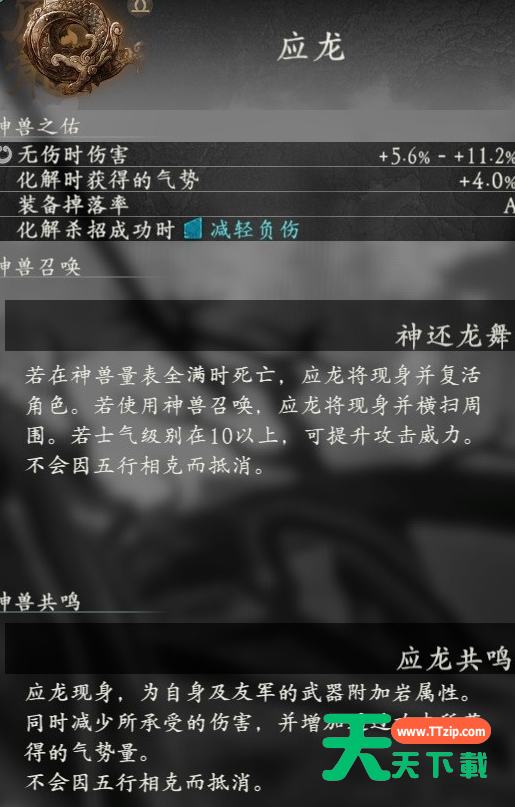 卧龙苍天陨落有10个神兽,那么所有的神兽属性效果如何呢?很多玩家还不太清楚,下面给大家带来的是卧龙苍天陨落神兽图鉴大全。 卧龙苍天陨落全神兽属性效果一览 麒麟 青龙 白虎 白泽 朱雀 腾蛇 獬豸 辟邪 玄武 应龙 @天天下载 除特别注明外,本站所有文章均为 天天下载 原创,转载请注明出处来自 https://www.ttzip.com/9120.html