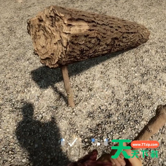 第1种方式:将原木横着放在地上,用树棍将原木抵起来,再用身体撞倒,就会出现两个原木了。
