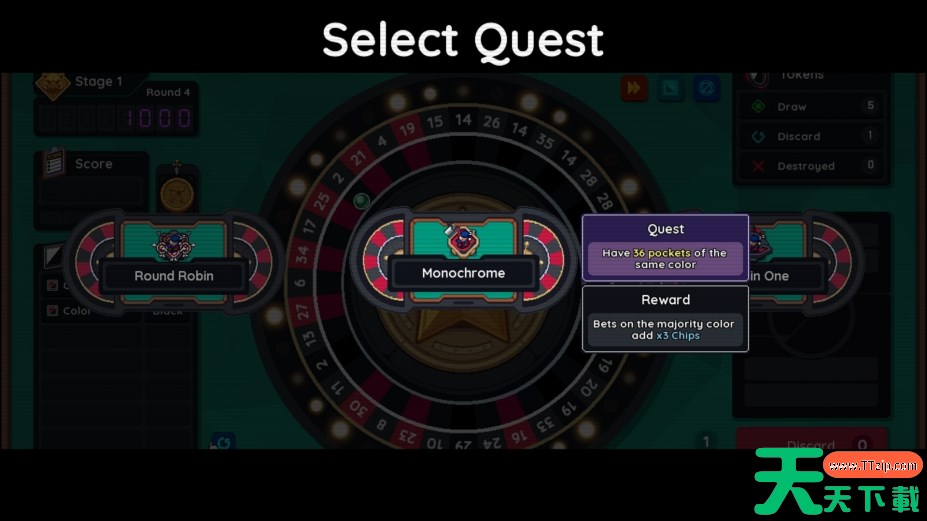 你将从普通轮盘开始,只需一个简单的球和投注。但当你旋转球并获得分数以清除回合时,你将有机会升级你的轮盘、球和投注,同时制定自己的策略。