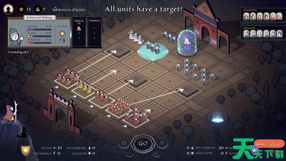在旅途中,你的信徒将投入一场场小规模战斗。根据教义解锁并招募多达 16 种特色单位,巧用他们的技能与地形优势,排兵布阵、制定策略,体验融合即时战略与自走棋的独特玩法。