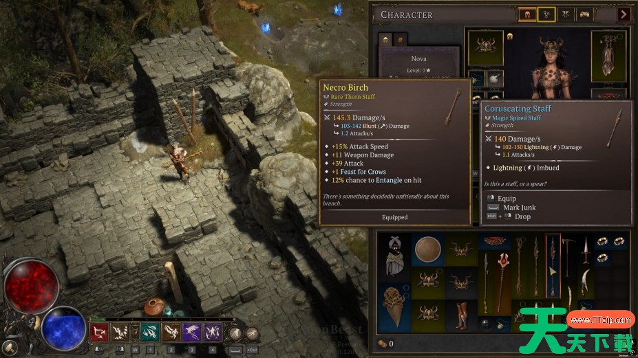 战斗系统:采用半即时制战斗,玩家可自由组合近战武器与远程法术,同时需利用环境互动制造范围伤害。