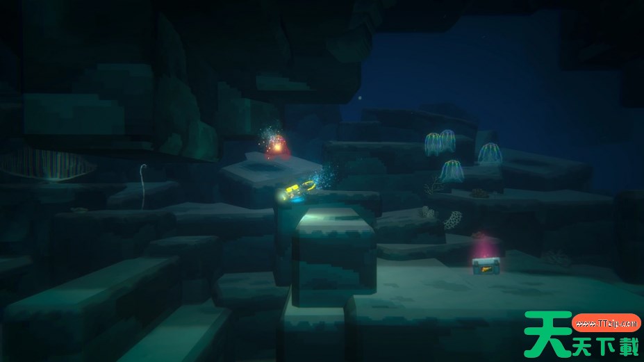 探索过程中,玩家会遇到侵略性的鲨鱼、简单的谜题遗址和超大Boss等挑战,这些都需要玩家运用策略和技巧来克服。