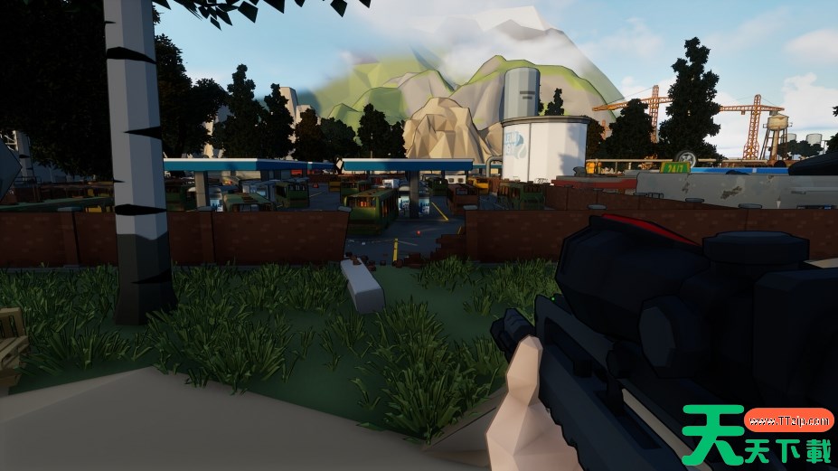 采用低多边形美术风格结合废墟场景设计,搭配昼夜交替与天气变化效果,营造出压抑而真实的末世环境。每张地图的细节处理(如残破建筑、散落骸骨)强化了沉浸感,让玩家仿佛置身于文明崩溃后的世界。