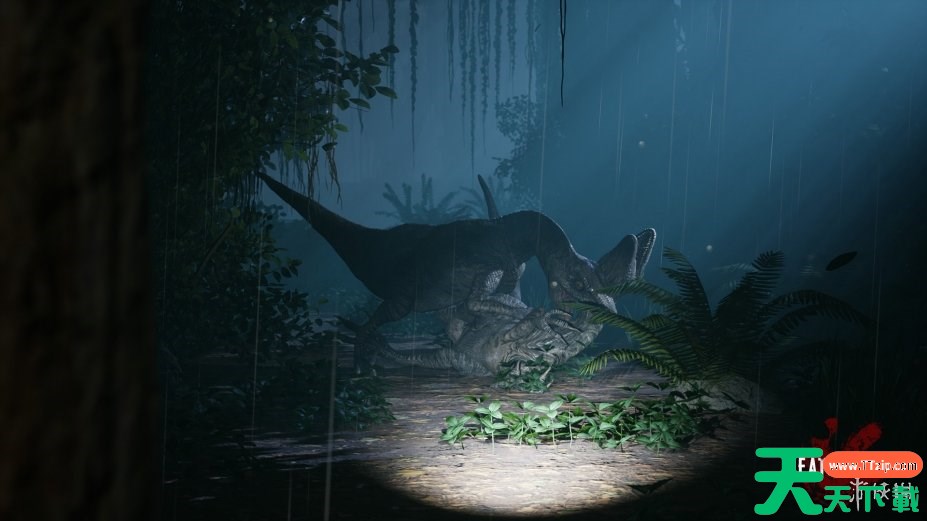 面对具备多维度感知能力的恐龙敌人,玩家必须根据环境实时调整行动策略:关闭手电筒避免暴露位置、蹲下慢步行进减少声响、利用障碍物遮挡身形……若不得不交战,则需权衡利弊——麻醉枪可暂时瘫痪目标但弹药稀缺,直接击杀虽彻底消除威胁却可能引来更多同类围攻。每一次选择都将直接影响团队存亡。