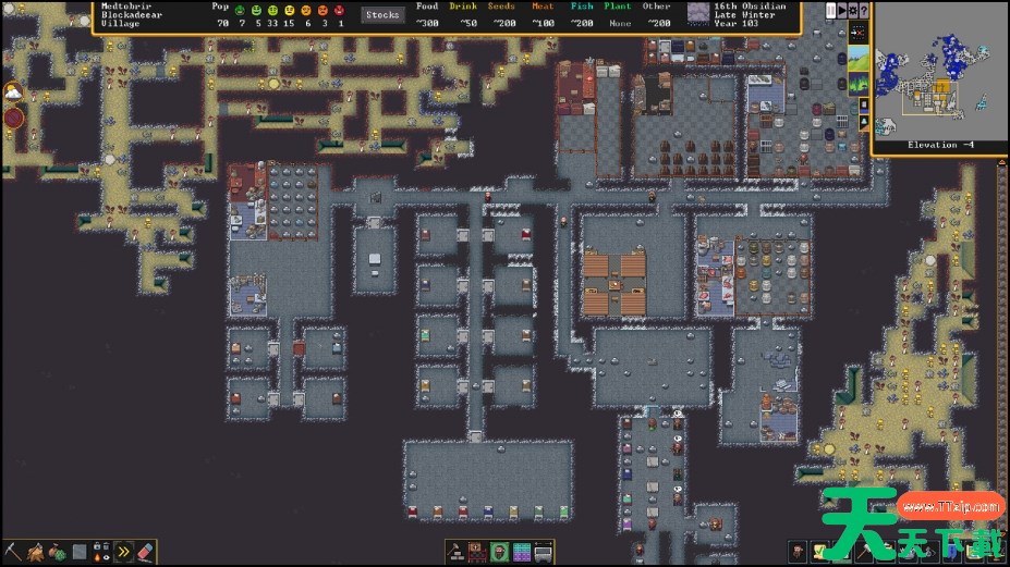 管理一个繁忙的矮人殖民地,确保他们有稳定的食物和啤酒供应。