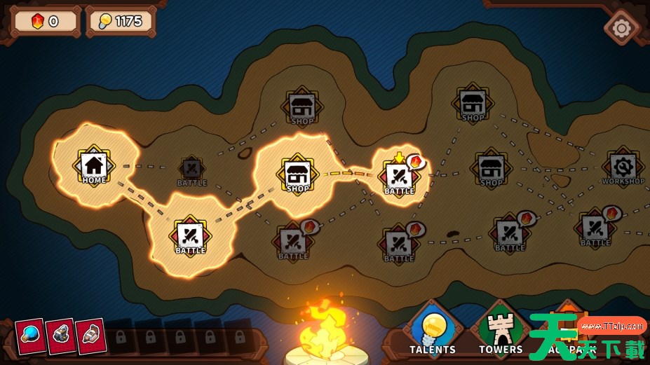 在不同的世界中,选择你的路线前往魔王关,收集新炮塔、稀有墙壁卡和神器,提升你的实力。