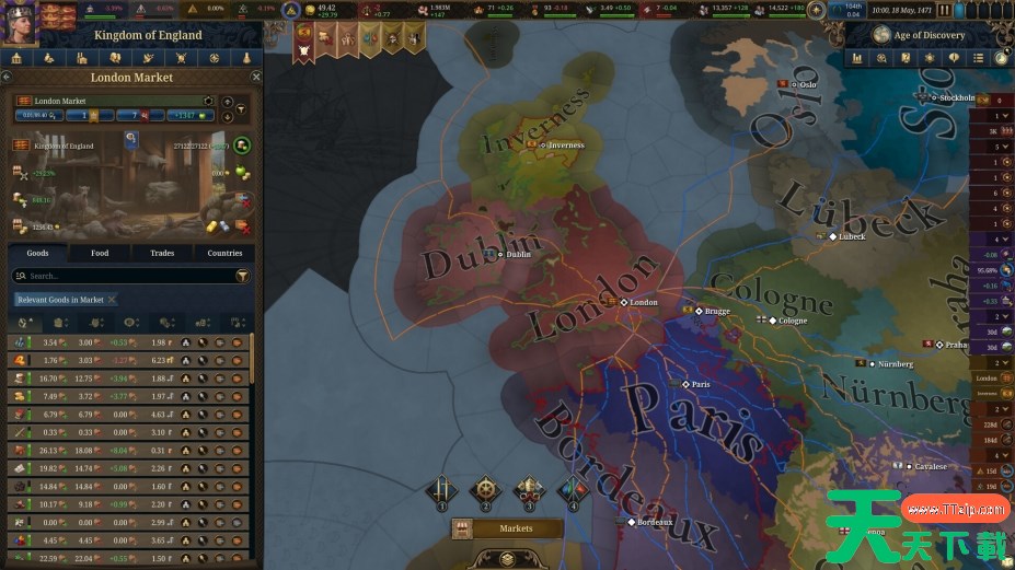 各省份产出铁器、香料等50+商品,贸易路线受海盗劫掠威胁。人口增长消耗粮食储备,经济危机可能引发叛乱,需平衡国库储备与民生投资。