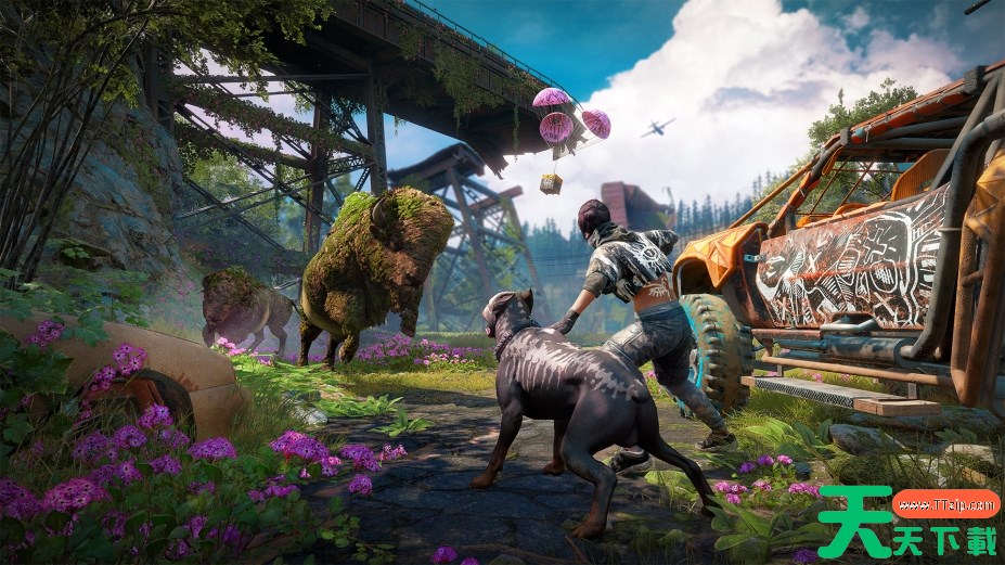 《孤岛惊魂:新曙光》的故事发生在全球核战争后的17年,地球经历了一场大灾变。玩家将进入一个名为“希望县”的废土世界,探索这个后启示录时代的美国。在这个新的世界中,原本繁荣的土地已经被自然和野生动物所占据,同时也有着一个残暴的势力——高速女妖(Highwaymen)的威胁。