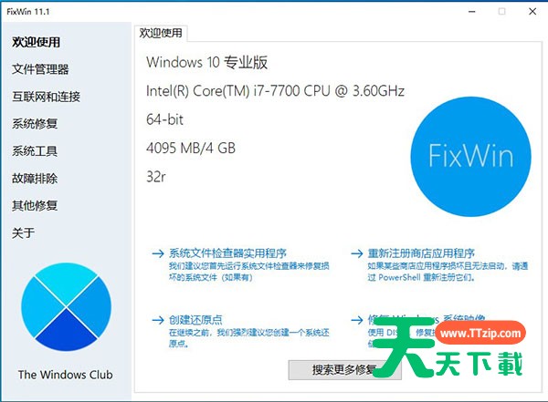 FixWin 11是一款专业的PC修复软件或Windows修复工具,只需单击一下即可修复 Windows 11/10 问题、烦恼和问题!FixWin 11为用户提供了丰富的修复功能,涵盖:文件管理器,互联网和连接,系统修复,系统工具,故障排除,其他修复等等,几乎常见的问题方向都能够兼顾到。无论您对计算机多么小心,有时可能会出现一些问题和错误,导致应用程序甚至操作系统无法正常运行。 FixWin 历史上已经包含六个 Windows 版本,现在提供针对 Windows 11 优化的版本,让您无需处理系统注册表即可解决可能发生的问题。它已更新至版本11,并进行了优化以支持Windows 11和Windows 10操作系统,是解决 Windows 11/10 问题的最佳电脑修复软件。