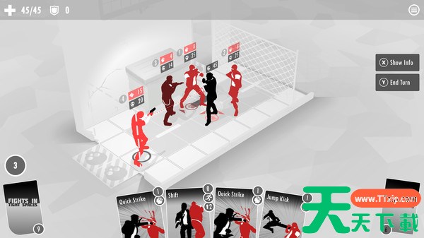 游戏融合了卡牌构筑,回合制战略以及如电影动作片般身临其境的分段式战斗动画。通过学习平衡手势,动量以及站位来克服不利的条件以打倒对手。