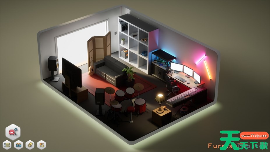 无财务限制,可自由挑选物品进行布置,还能调整房间形状,发挥创意打造独特空间。
