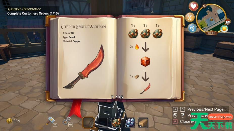 整理并优化库存中的矿石、锭子和其他材料,通过购买、任务奖励或探索获取更稀有的资源。升级铁匠铺以解锁新的工作台和高级功能,提高生产效率。同时管理日常开支,确保业务稳步增长。