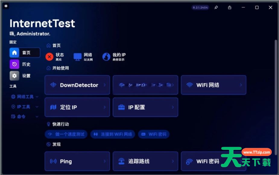 InternetTest Pro - 您的 Windows 连接工具包。轻松监控、诊断和优化互联网连接。从网络诊断到 WiFi 密码恢复,为用户提供可行的见解。随时随地无缝提升您的在线体验。欢迎需要此款工具的朋友前来下载使用。