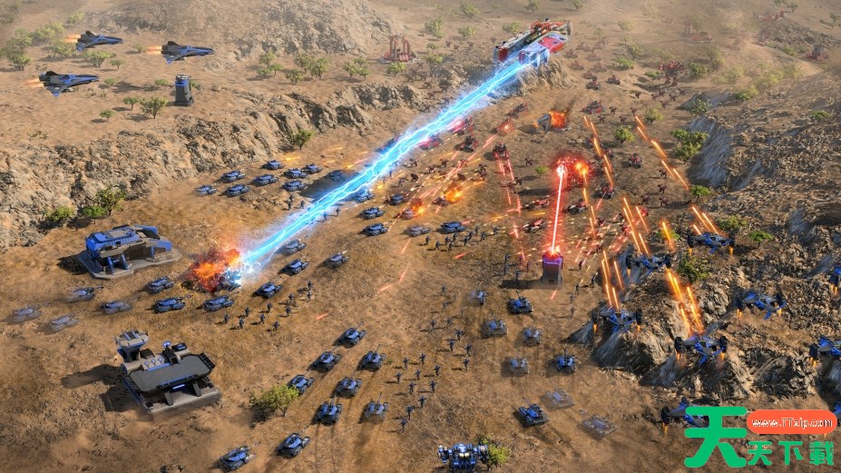 在实时战斗中指挥数千单位,战斗遍布整个大陆级战场。利用战略缩放功能,从太空轨道到前线精确部署军队,甚至可以改变地形——不仅为了征服,更是为了重建。当建筑坍塌、地形在Turinium之间转换时,你将亲眼见证战区在实时中如何因为你的行为而发生变化。