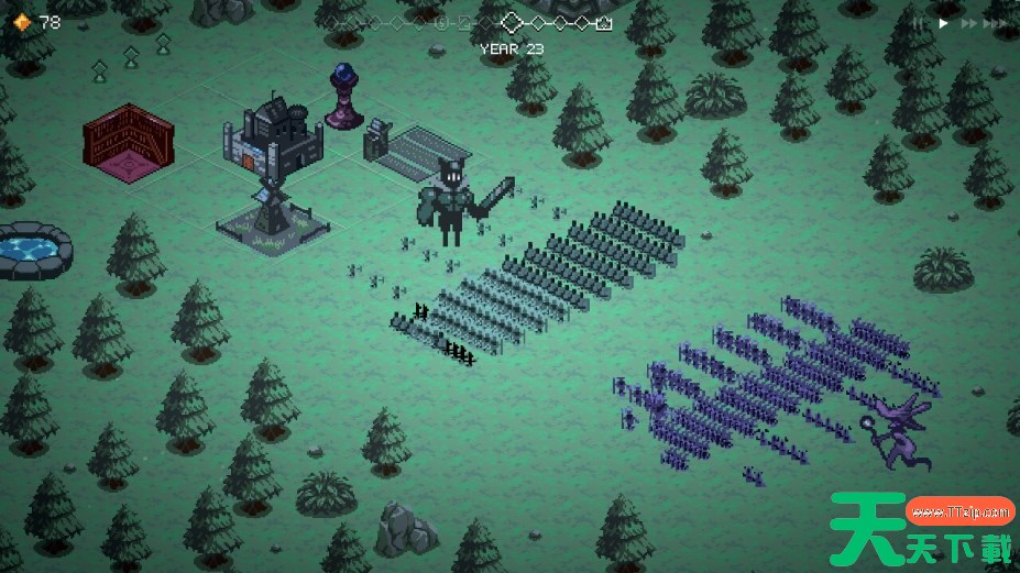 每局随机生成敌对派系类型与特殊事件(如佣兵叛乱、魔法瘟疫),通过解锁生存、经济类天赋强化王国抗风险能力。