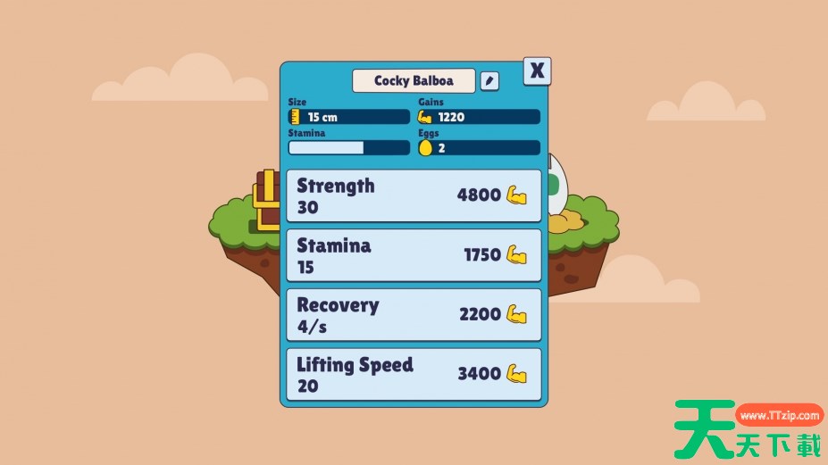 积累肌肉点提升力量、耐力等属性,解锁更强健身能力,助力鸡哥突破极限。