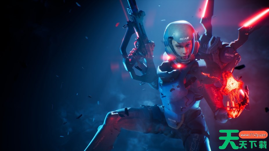 采用第一人称射击视角,结合跑酷机制与科幻武器设定。玩家可运用冲刺、抓钩、墙跑等动作突破防线,配合重力钩与喷气背包实现立体机动,形成“杂技式战斗”风格。机甲部队与元素军队的AI行为模式多样,需针对性调整战术。