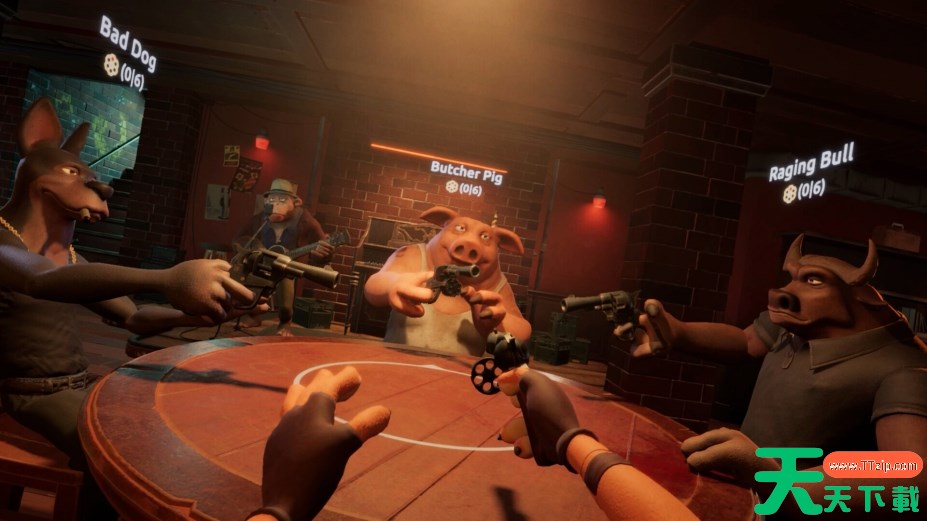 背景设定在一个充满神秘与阴郁氛围的酒吧之中,昏暗的灯光以及酒吧内的各种装饰,营造出逼真的游戏环境。