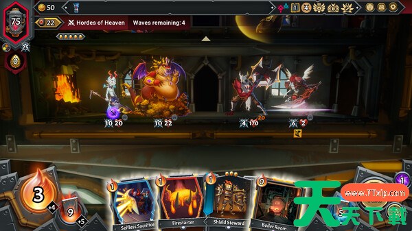 通过共享的“余烬”点数系统平衡卡牌使用与单位召唤,考验玩家在回合初的资源规划能力。