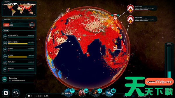 《灭绝之日》里有一个即将进入毁灭的世界,因为你就是那个毁灭的根源,通过灾难、疾病、战争和其他灾难性事件来毁灭人类,让这个世界陷入混乱,让这星球上彻底失去生机才是你的终极目标。