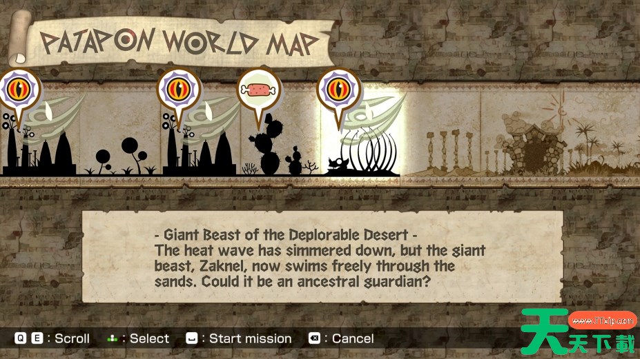 世界尽头探险 穿越7大奇幻地貌,从灼热沙漠到机械废都,每个区域都有专属BGM和隐藏BOSS挑战。 部队编成实验室 自由混编不同职业比例,测试发现隐藏兵种搭配,如全部选用旗手PON会解锁狂欢节阵型。 稀有变异孵化 战斗中低概率出现闪光PATAPON,拥有特殊属性加成,可通过特定饲料培养出传说级个体。 双作完整传承 包含1代史诗征程与2代英雄进化系统,追加全新最终试炼"诸神黄昏"关卡。