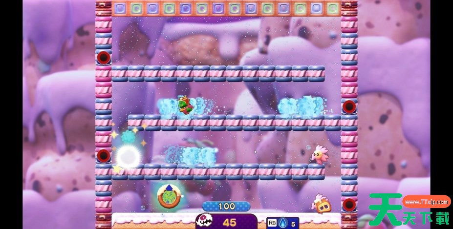 在《泡泡龙:白糖地下迷宫》中,玩家将操控吐泡泡的巴比,在充满神奇与美味的甜点世界展开刺激冒险。巴比每次踏入都会改变样貌的神秘地下迷宫,运用泡泡困住敌人,再用角或背部的刺破泡泡将其击败。同时借助泡泡随风向移动及可在泡泡上跳跃的特性探索迷宫,收集宝物。收集到的宝物能让巴比觉醒新技能,进而向关卡最深处以及庞大城堡迈进,不断挑战自我,体验成长型玩法带来的乐趣。