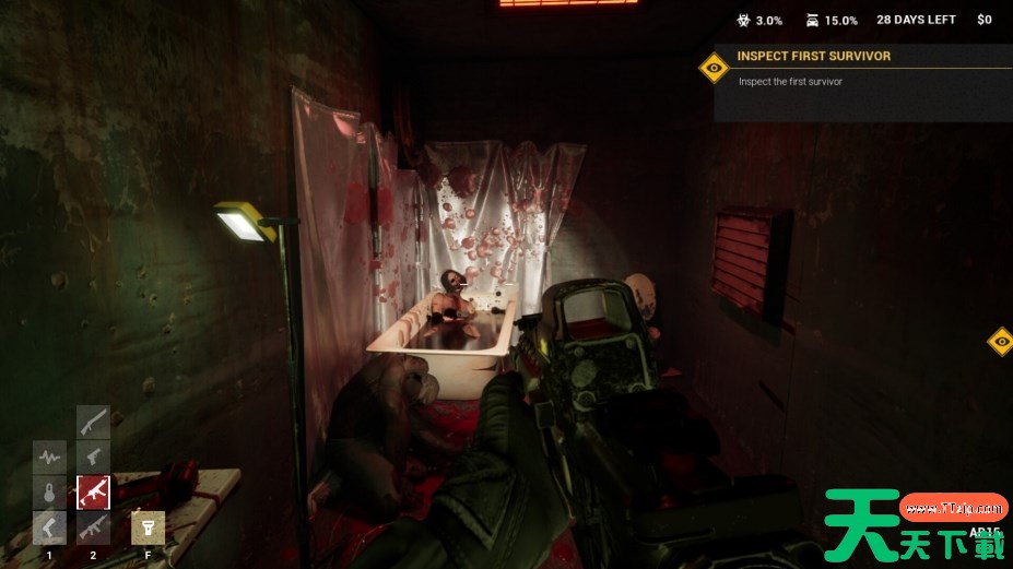 倒计时机制贯穿全程,30天的军队救援窗口期迫使玩家在有限时间内平衡探索、防御与筹备工作。僵尸强度随时间递增,营造步步紧逼的窒息感,凸显策略规划的重要性。