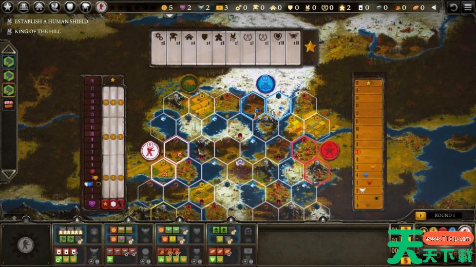 - 不对称:每名玩家在开局时都拥有不同的资源和资产(能量、金币、敏锐的战斗意识、声望值等)、起始位置和秘密目标。每个势力的起始位置都是专门为增加势力独特性和游戏总体的不对称性所设计的。