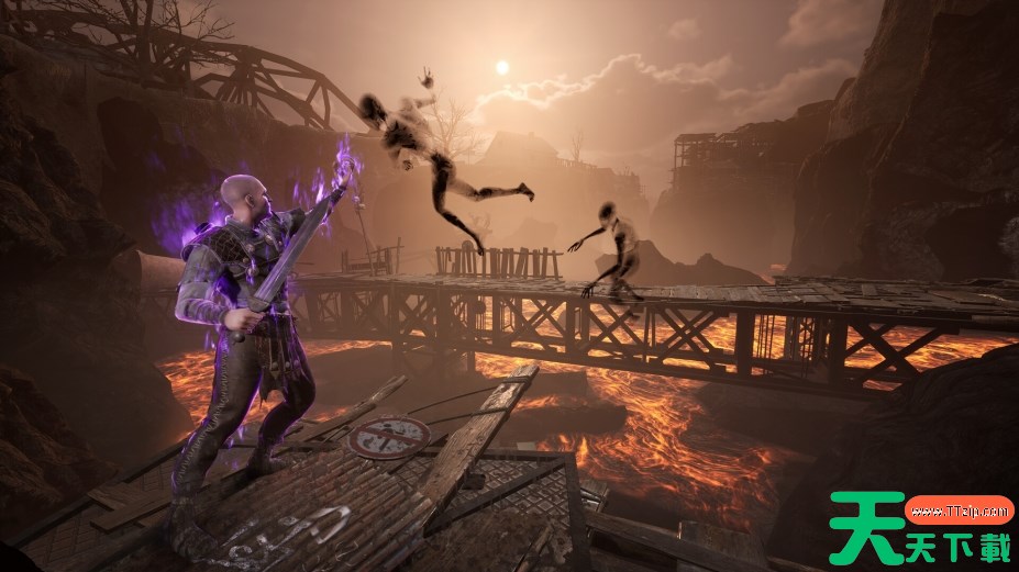 每种武器可通过“罪孽熔炉”附加特殊效果(如火焰伤害、吸血),搭配紫色力量形成独特流派。