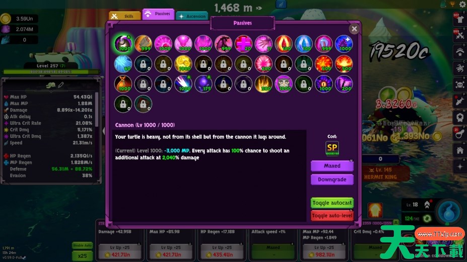 召唤强大的首领并击败它们,赢取全新装备。这些装备具有提升金币获取、生命恢复、掉落率、暴击率等属性的协同效应。分解不需要的装备可获取升级材料,提升召唤等级,增加获得稀有物品的几率。当时机成熟时,海龟会获得全新力量,重新踏上征程,每次提升都会带来永久升级,让海龟更快更强。