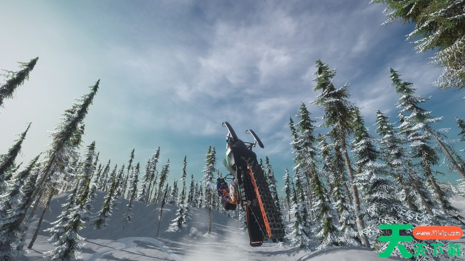 包含雪山、森林、河流等复杂地形,玩家可自由骑行探索隐藏区域(如废弃小屋、滑雪赛道)。